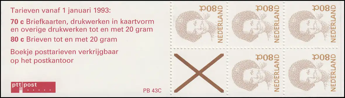 Markenheftchen 44 Königin Beatrix 1991 mit 2 Tarife und PB 43C, **