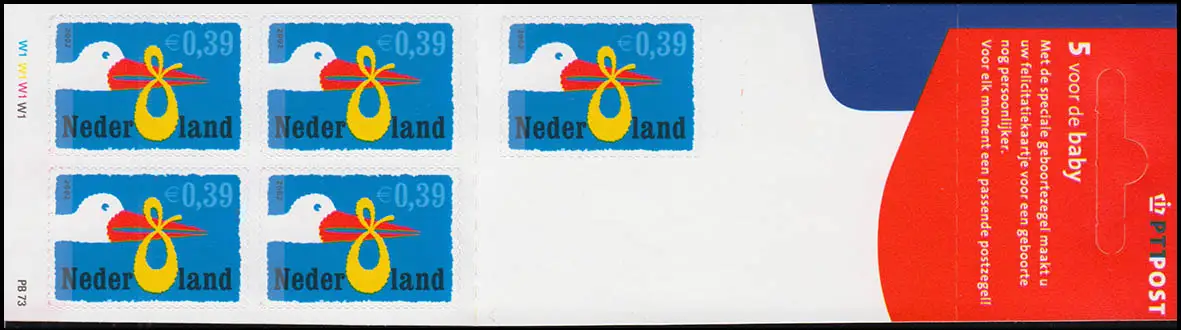 Markenheftchen PB 73 Geburt 2002 mit 5x 1974 selbstklebend, ** postfrisch