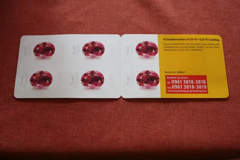 Markenset, MaxiSet, Markenheft MH-Mi.-Nr. 87, Wohlfahrt 2012; Edelsteine: Rubin