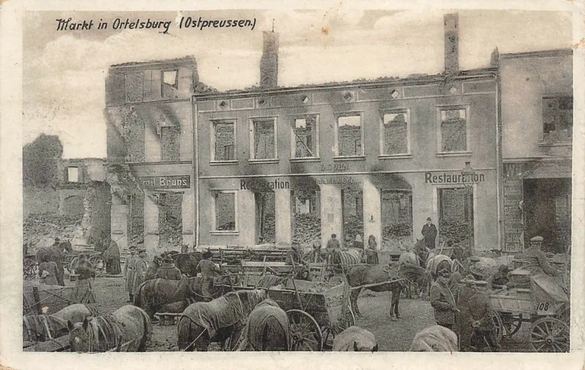 Markt in Ortelsburg (Ostpreussen) Postkarte 1916