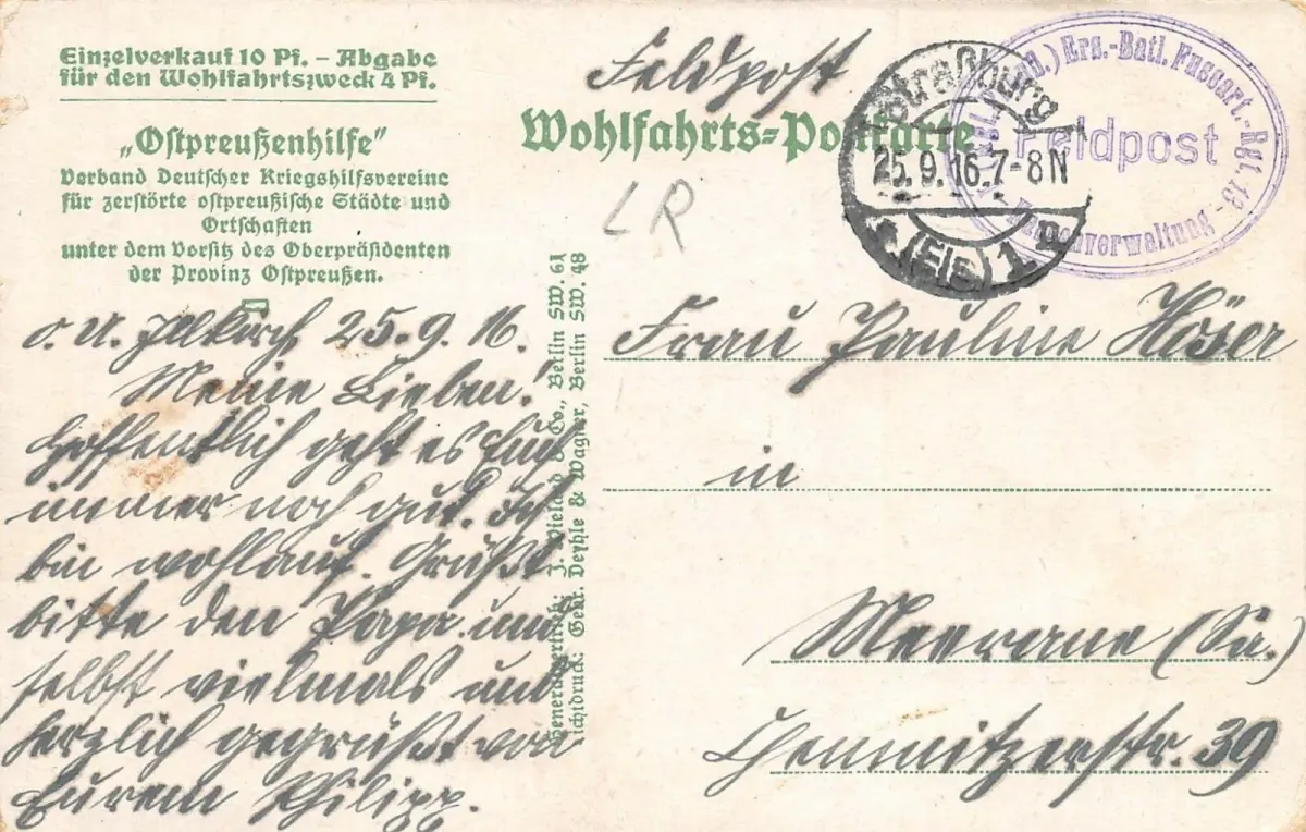 Rückseite: gelaufen 1916 von Straßburg (Els.)