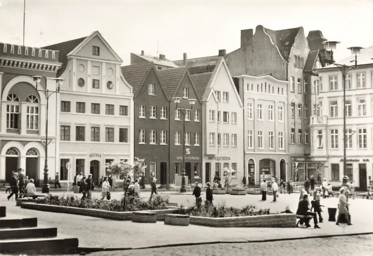 Markt in Schwerin Mecklenburg-Vorpommern Postkarte AK 1980