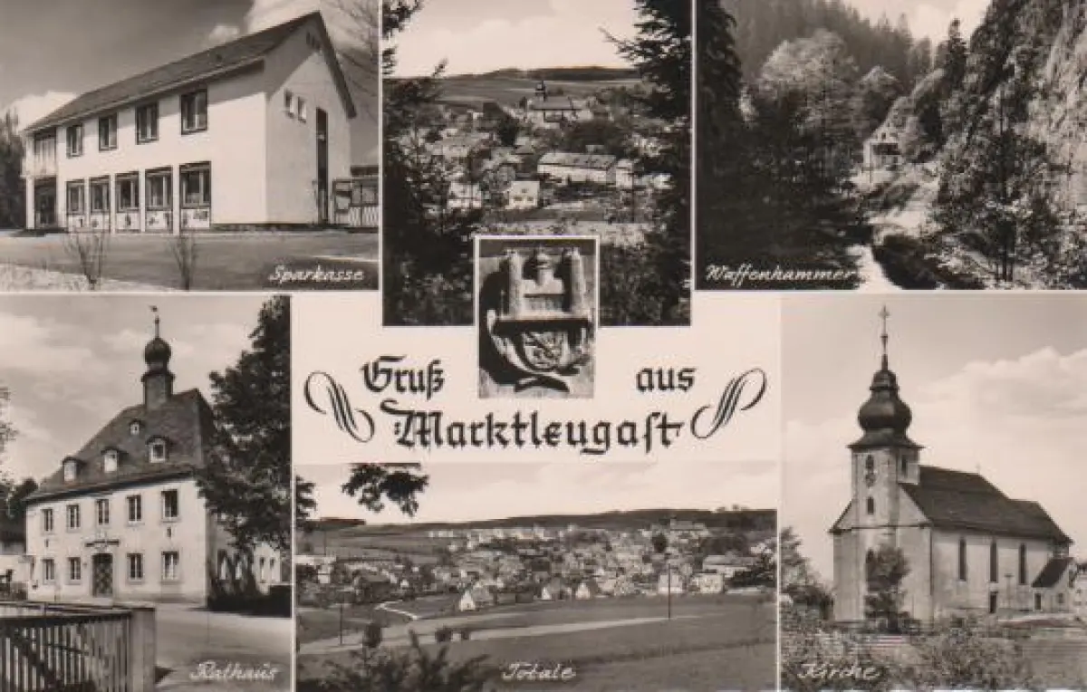 Marktleugast - Sparkasse, Rathaus, Totale, Waffenkammer, Kirche - 1970