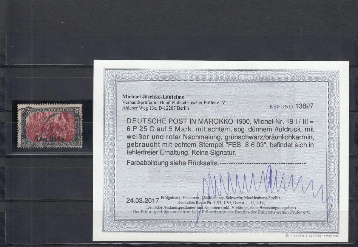 Marokko: MiNr. 19 I / III, gestempelt FES, BPP Befund