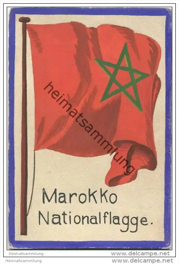 Marokko - National Flagge - keine Ansichtskarte Grösse ca. 14 X 9 cm etwa 1920 handgemalt auf dünnem Karton