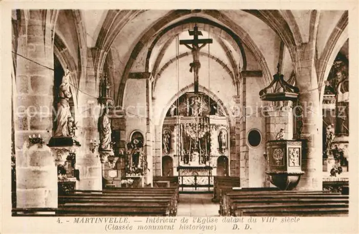 Martinvelle Intérieur de l'Eglise VIIIe siècle Monument historique Martinvelle postalisch nicht gelaufen 1921-1965 Erhaltung siehe scans [FriedD77] Frierer