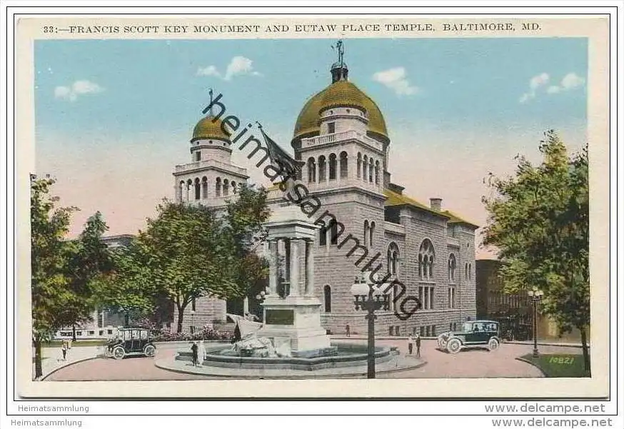 Maryland - Baltimore MD - Francis Scott Key Monument and Eutaw Place Temple - former Oheb Shalom - Synagoge - Edition Harry P. Cann & Bro. Baltimore (E7366)