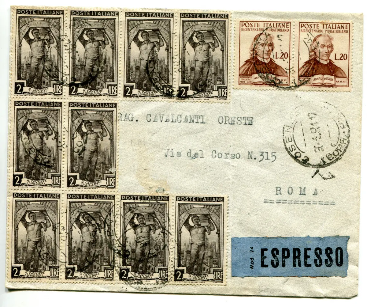 Maurerpaar auf Umschlag Umschlag - Maurer Nr. 625 Paar + Ergänzungen Nr. 636 zehn Exemplare auf Expressumschlag am 30.9.51 - ungewöhnliche Mehrfachnutzung, im Tarif Cod. 273/13