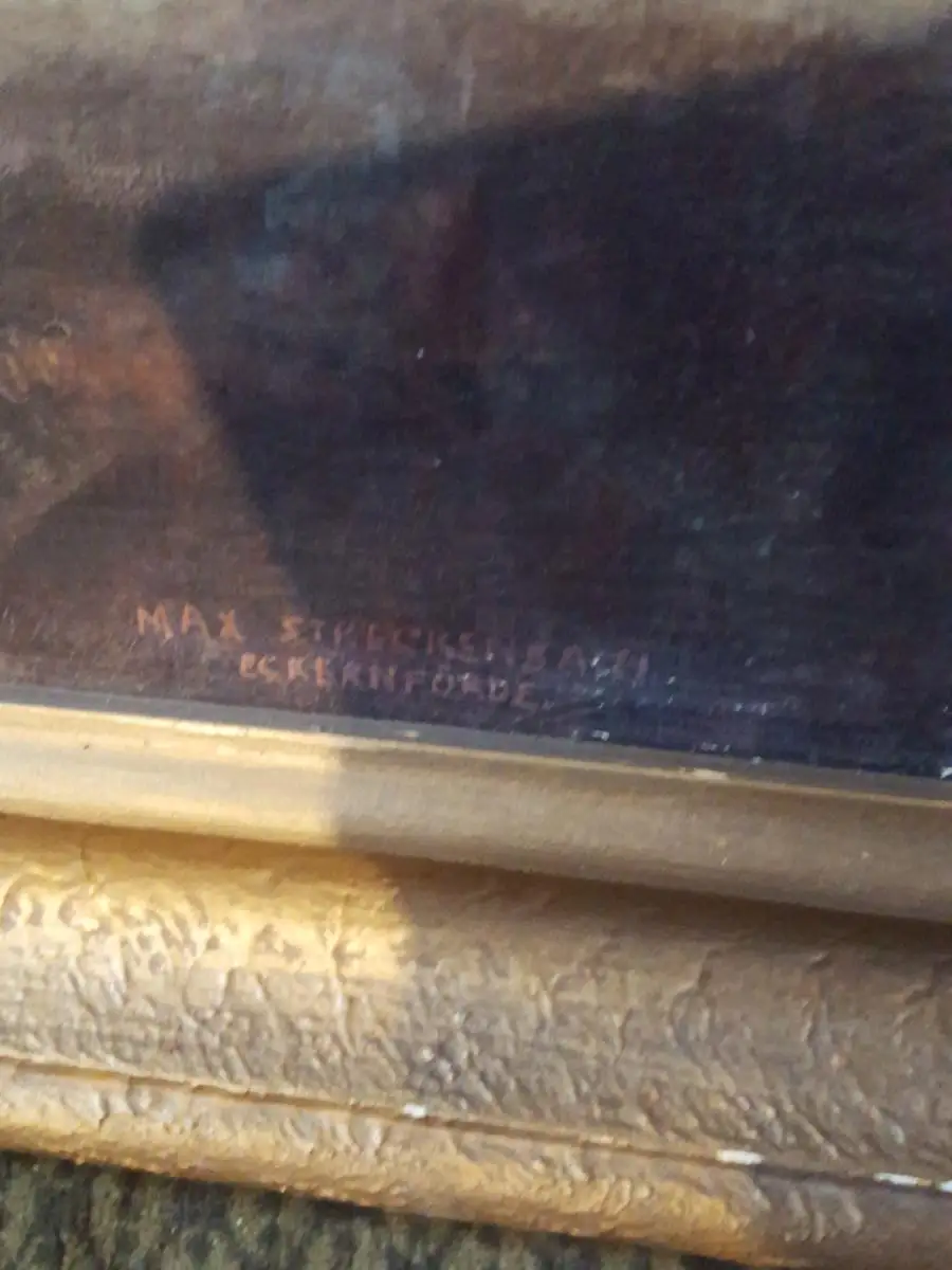 Farbige Oleographie /Öldruck auf Leinwand , rechts signiert im originalen Rahmen