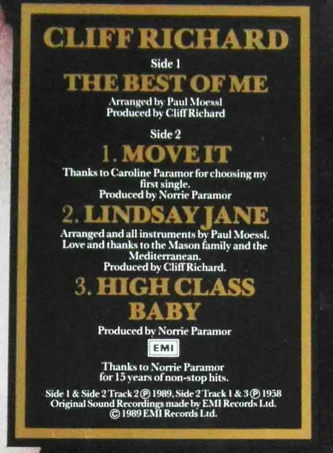 Maxi Cliff Richard: The Best Of Me - 100th Single (EMI 060 20 3383 6) D 1989