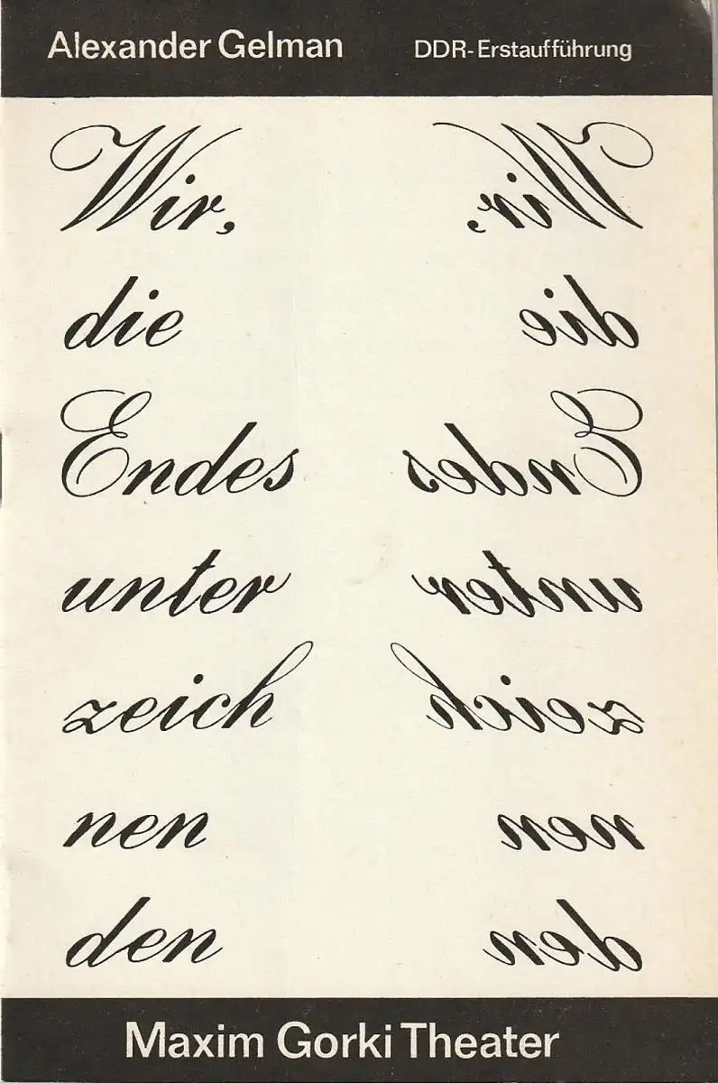 Maxim Gorki Theater, Albert Hetterle, Manfred Möckel: Programmheft Alexander Gelman WIR, DIE ENDESUNTERZEICHNENDEN Premiere 27. März 1985 Spielzeit 1984 / 85 Heft 2.