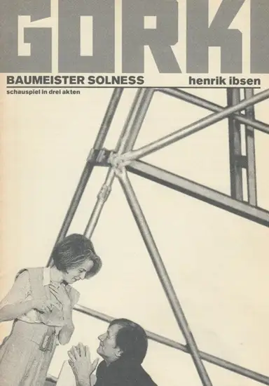 Titel: Baumeister Solness. Schauspiel in drei Akten. Spielzeit 1995 / 1996. Intendant Bernd Wilms. Regie Ari Zinger. Bühne Götz Loepelmann. Kostüme Marlies von Soden. Musik Gert Müller. Dramaturgie Carola Friedrichs-Friedlaender. Darsteller Klaus Manchen / Monika Lennartz / Ulrich Anschütz / Albert Hetterle u.a
