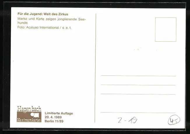 Maximum-AK Welt des Zirkus: Jonglierende Seehunde