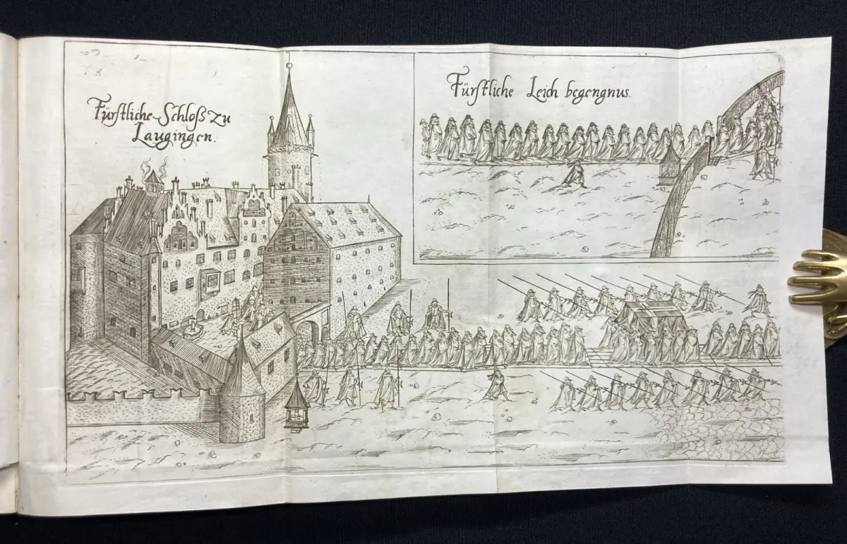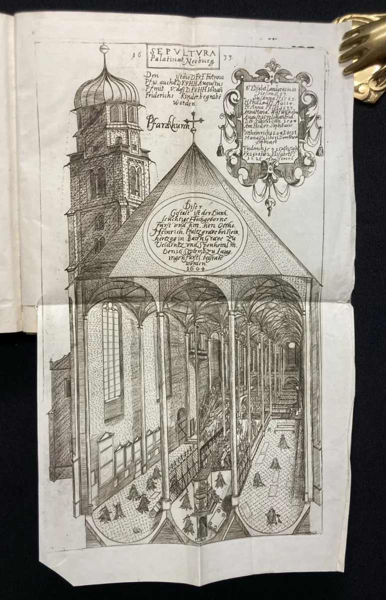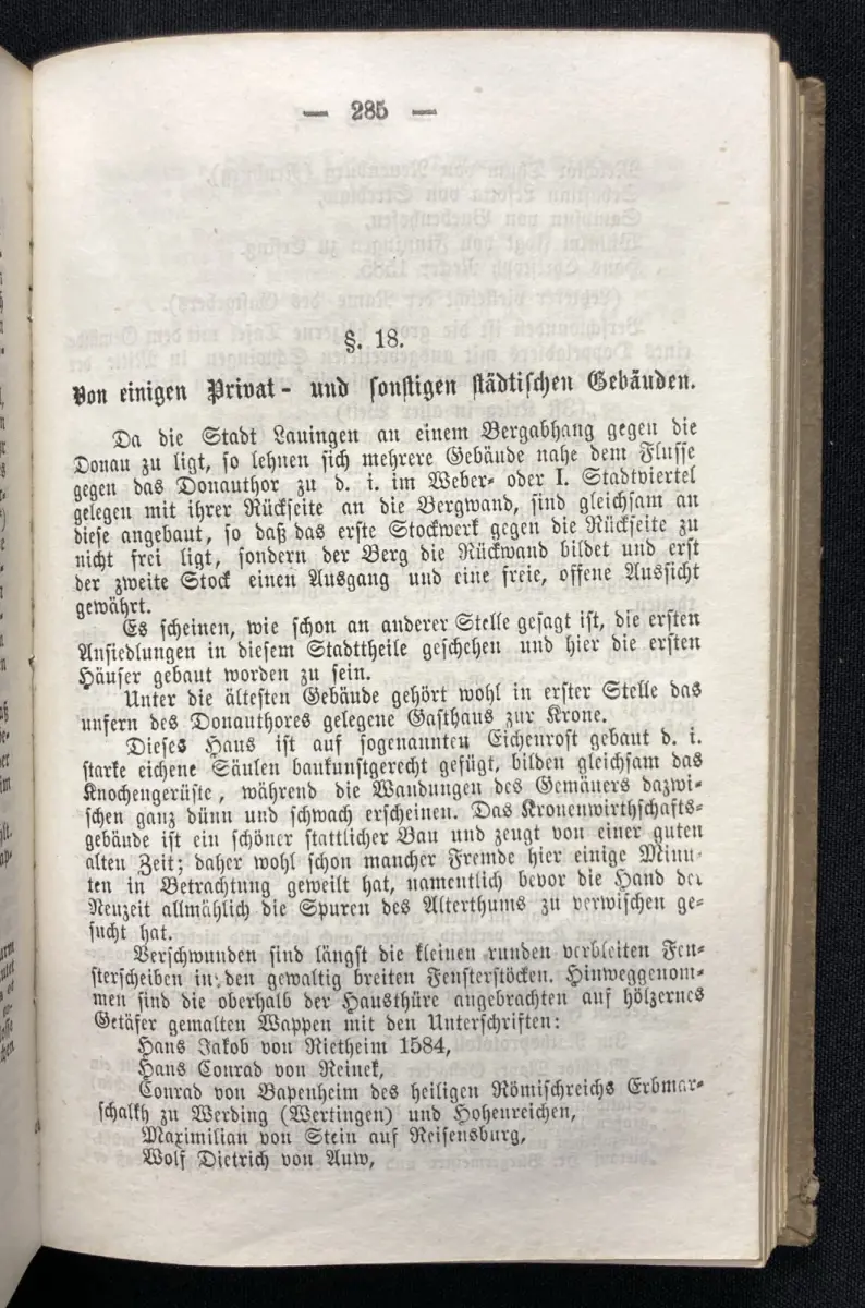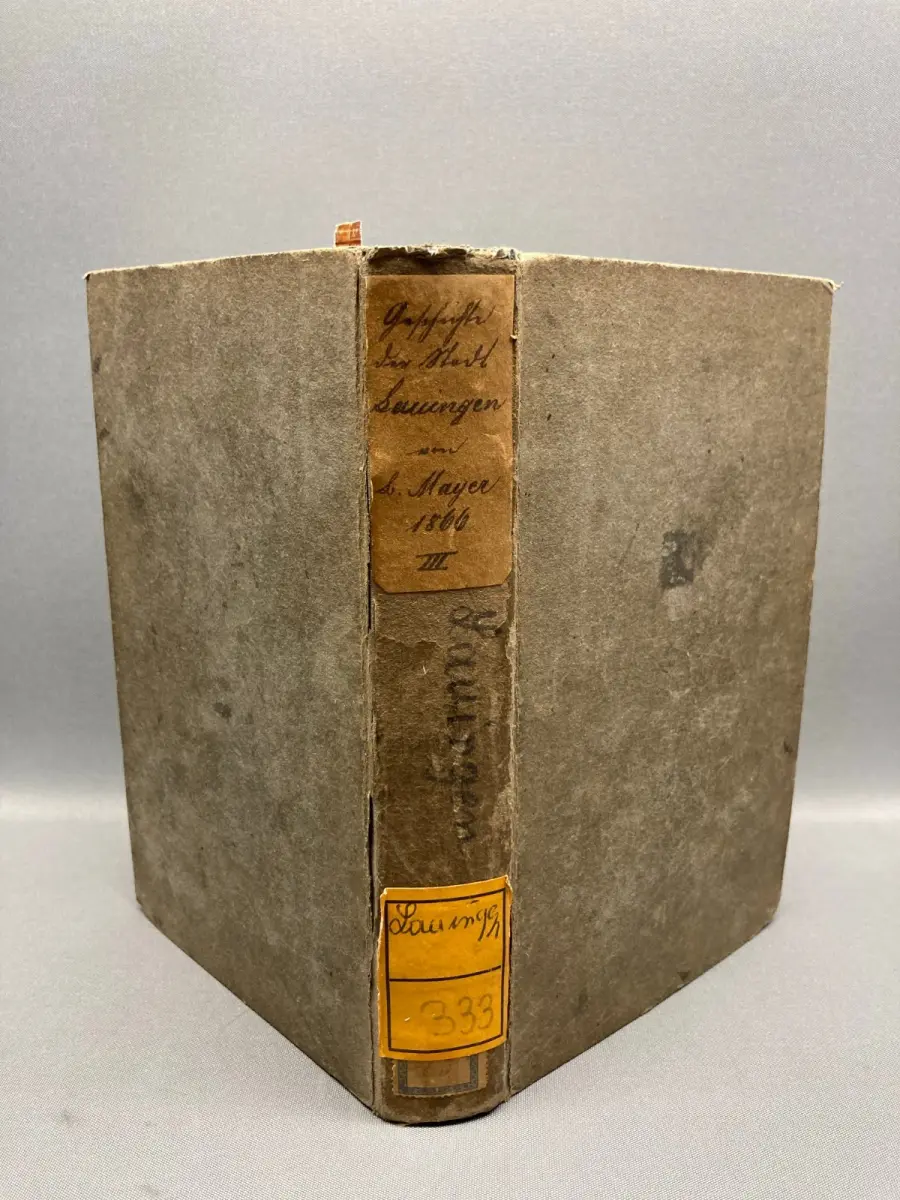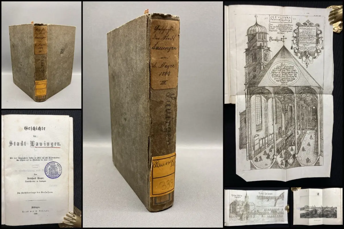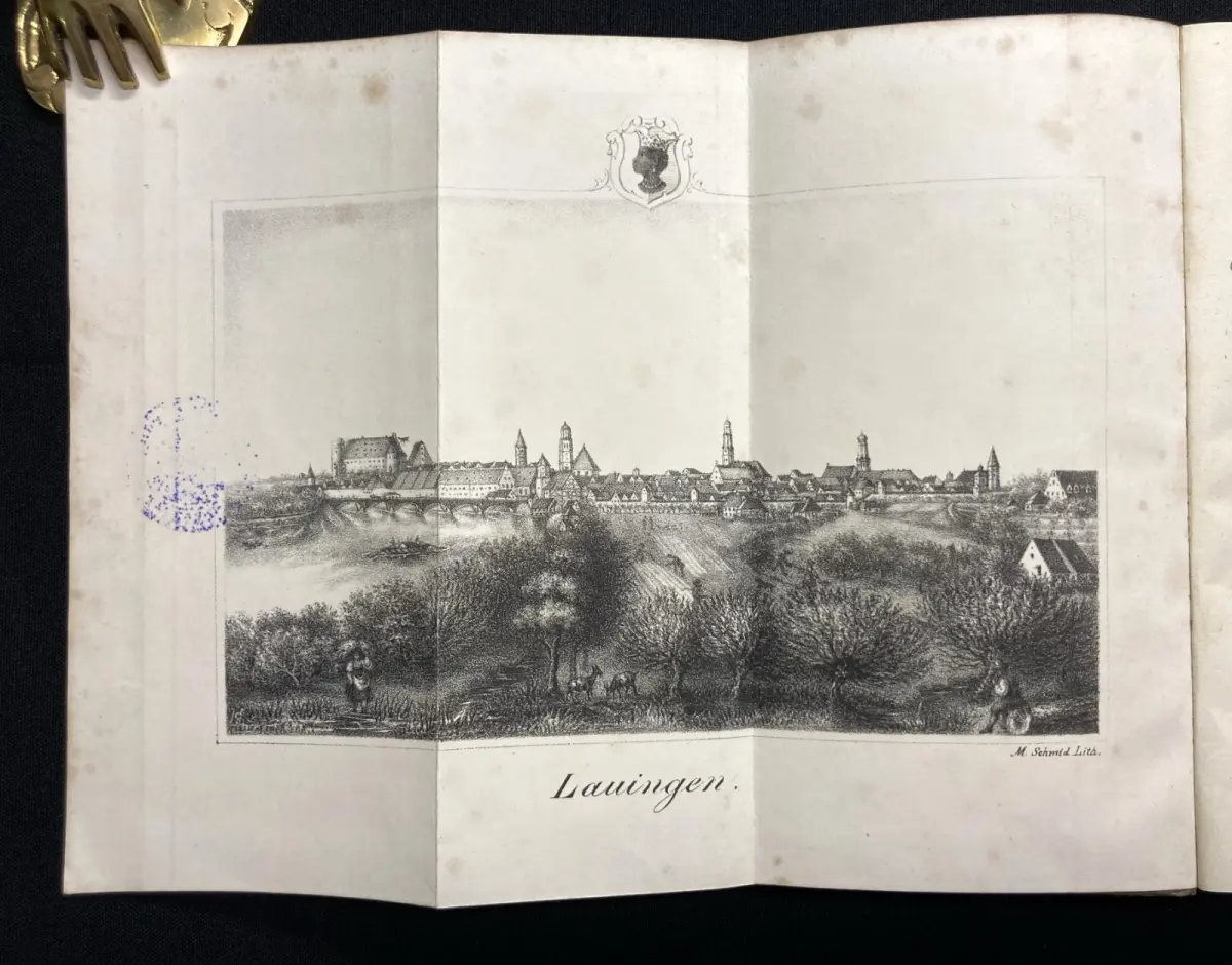 mit 1 lithogr. Ansicht von Lauingen, sowie 2 Kupferabdrücke vom Schloss und der Pfarrkirche im Jahr 1604, Ppbd. d. Zt.