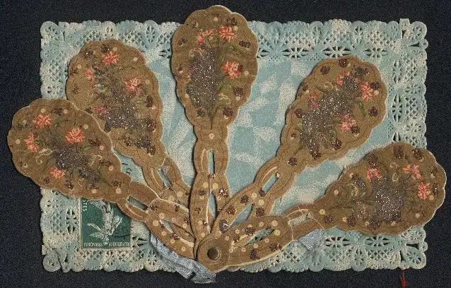 Mechanische-AK Fächer mit Glitzerpartikeln und blauer Schleife