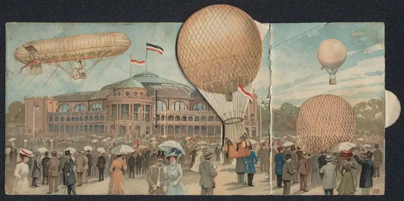 Mechanische-AK Frankfurt a. M., Internationale Luftschiffahrt-Ausstellung 1909, Aufsteigender Heissluftballon