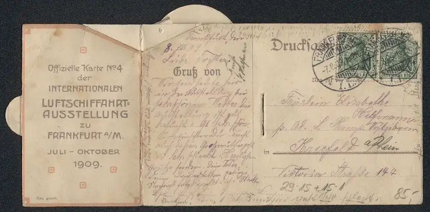 gelaufen 1909, Eckknick re. oben, guter Zustand