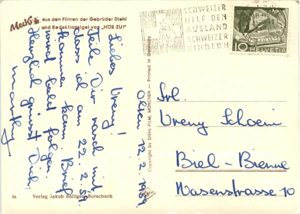 Danke. Alles Bestens. Können Sie mir allenfalls mitteilen, aus welchem Jahr die Postkarte stammt? Besten Dank.