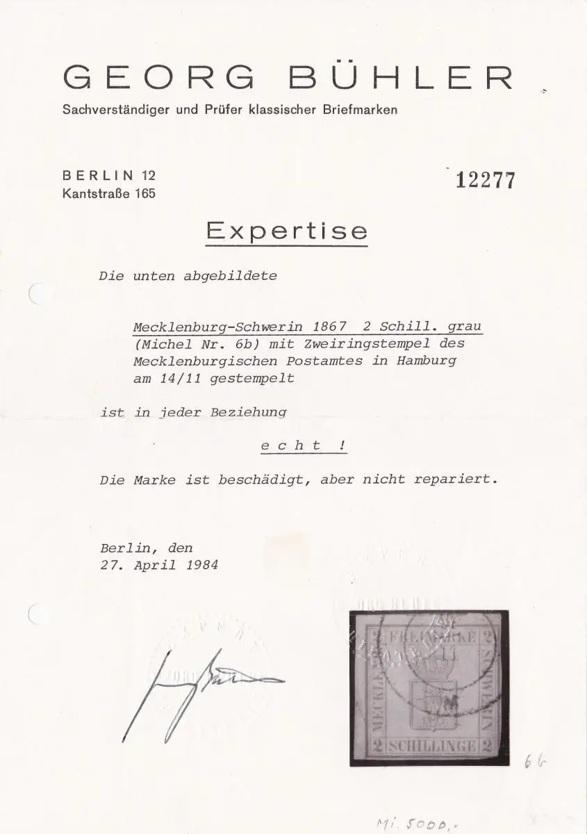 Mecklenburg-Schwerin 1867: MiNr. 6b, gestempelt