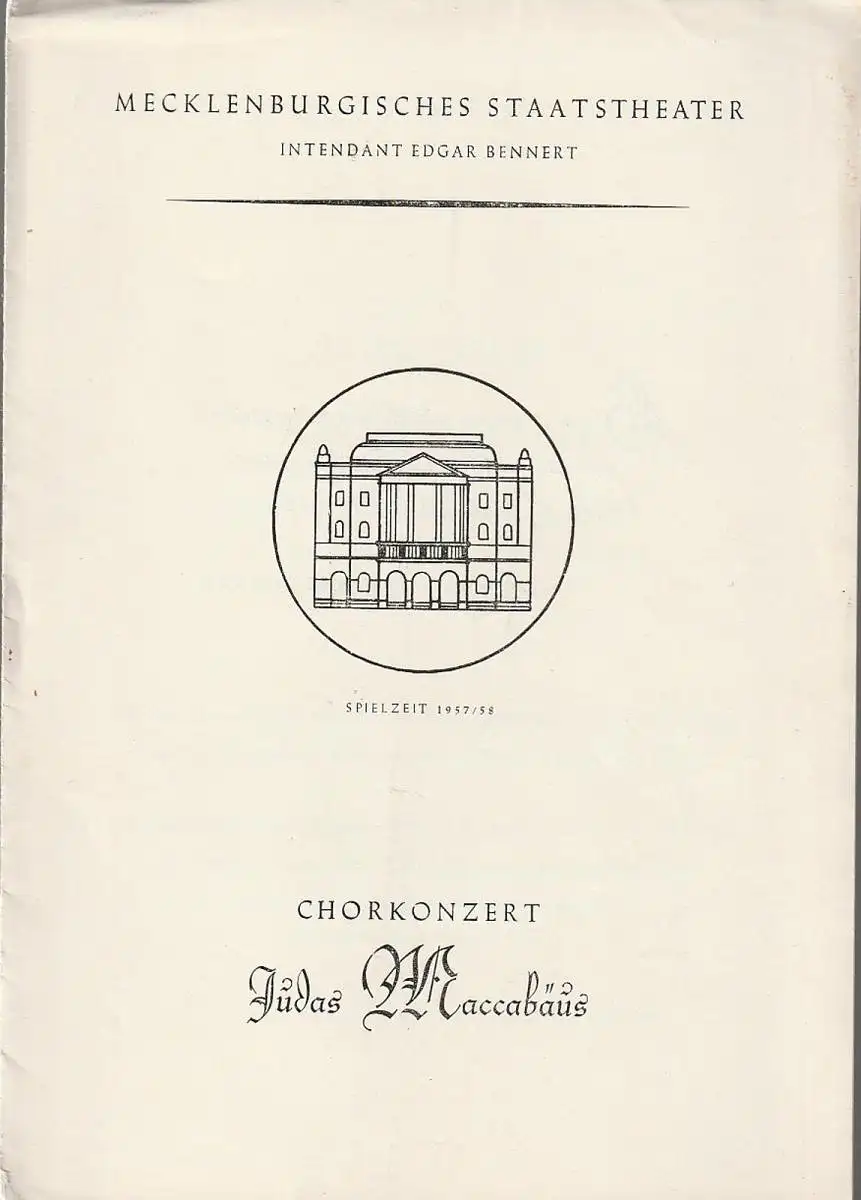 Mecklenburgisches Staatstheater, Edgar Bennert, Stephan Stompor: Programmheft CHORKONZERT JUDAS MACCABÄUS 27. Februar 1958 Spielzeit 1957 / 58.