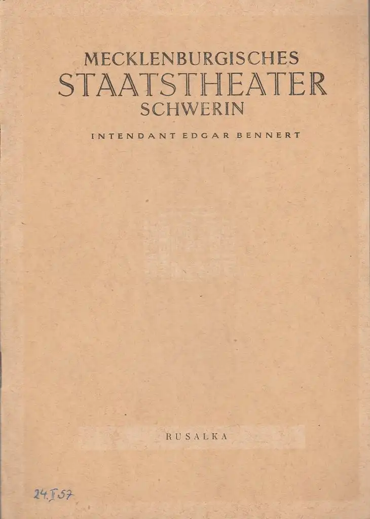 Mecklenburgisches Staatstheater Schwerin, Edgar Bennert, Ingrid Seitz: Programmheft Antonin Dvorak RUSALKA.