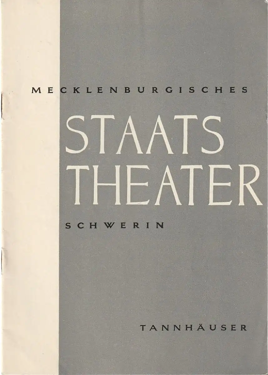 Mecklenburgisches Staatstheater Schwerin, Erwin Bugge, Stephan Stompor: Programmheft Richard Wagner TANNHÄUSER UND DER SÄNGERKRIEG AUF DER WARTBURG Juni 1959.