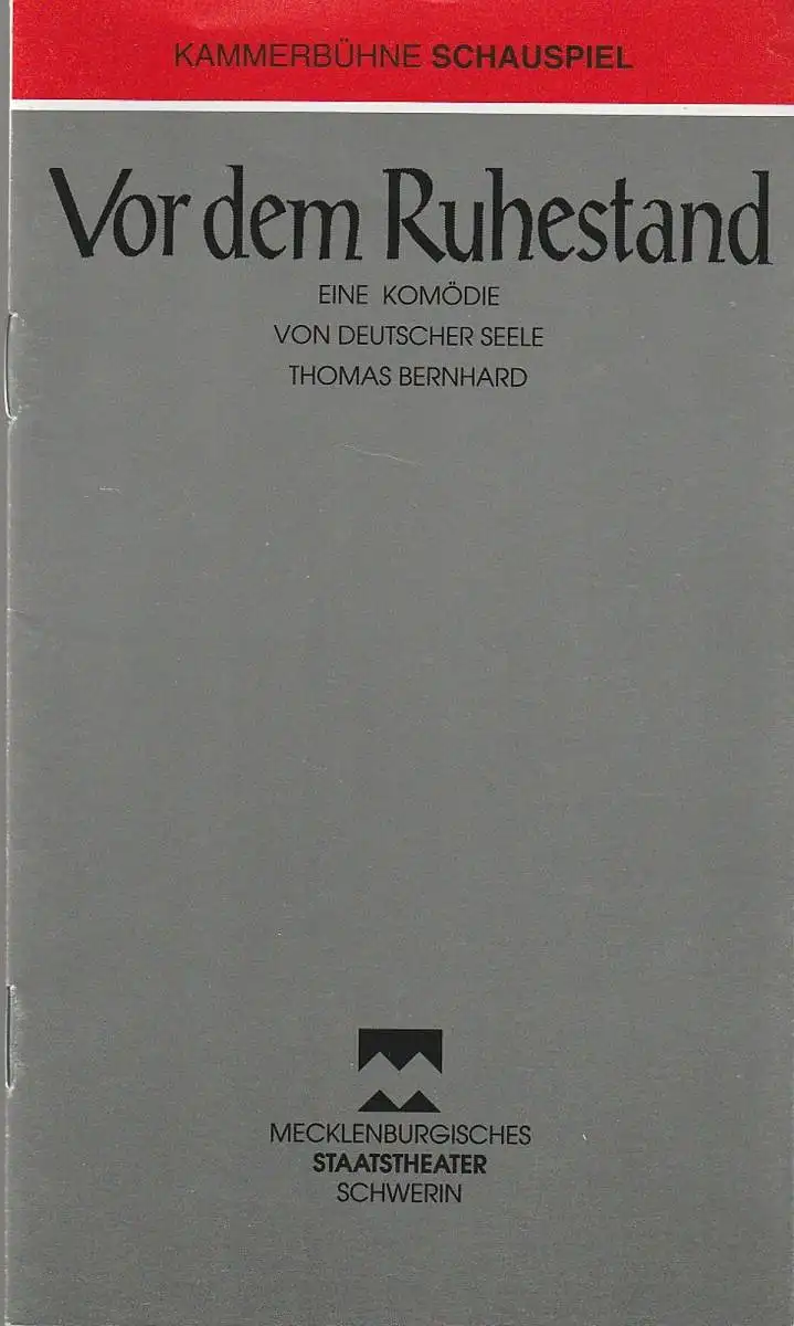 Mecklenburgisches Staatstheater Schwerin, Joachim Kümmritz, Nikolaus Merck: Programmheft Thomas Bernhard VOR DEM RUHESTAND Premiere 28. November 1992 Spielzeit 1992 / 93.