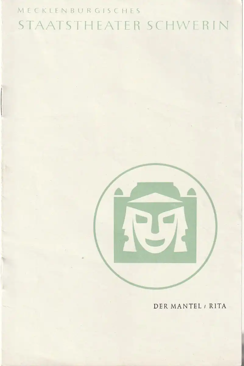 DER MANTEL: Oper in einem Akt. Musikalische Leitung: Heinz Fricke. Inszenierung: Erwin Bugge. Bühne: Kurt Froese. Kostüme: Christa Hahn. Mitwirkende: Dierich Musch, Günter Skerka, Gustav Kallfelz, Siegfried Breslich, u. a. RITA: Komische Oper. Musikalische Leitung: Joachim Willert. Inszenierung: Reinhard Schau. Bühne: Kurt Froese. Kostüme: Christa Hahn. Mitwirkende: Thea Peter, Hans-Joachim Glaser, Rolf Oberste-Brink. - Theaterprogramm, Opernprogramm, Ballettprogramm, Musicalprogramm, Konzertprogramm, Theatermemorabilia, Programmhefte Sammlung, deutsche Theatergeschichte.