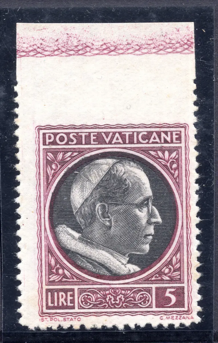 MNH - Vollgummi - - Medaillons 5 Lire lila und schwarz Nr. 97d ungezähnt am oberen Blattrand, neu perfekt mit Vollgummi Cod. 2666/WEB