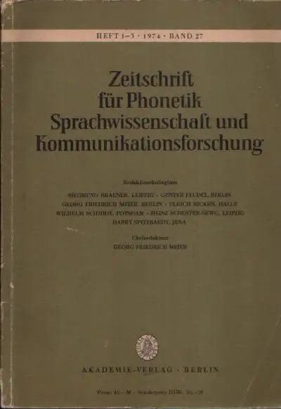 Zeitschrift für Phonetik Sprachwissenschaft und Kommunikation Form, Semantik und Funktion der Sprache - Band 27 Heft 1-3