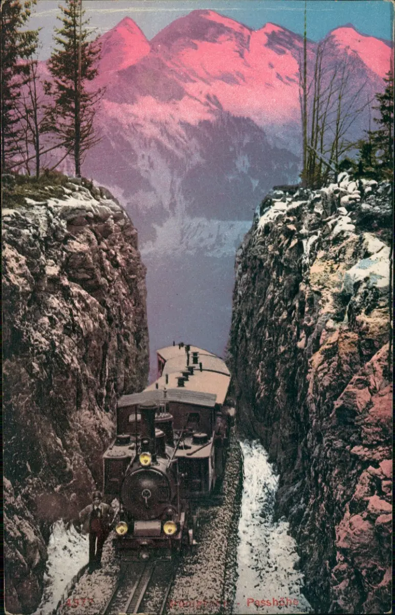 Meiringen Stimmungsbild Brünigbahn Dampflokomotive Luzern Interlaken 1912