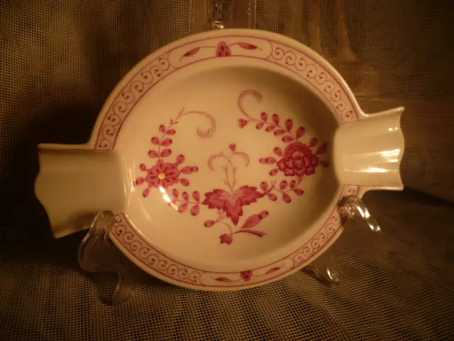 Meissen Aschenbecher in Fächerform Indische Purpur Blumenmalerei