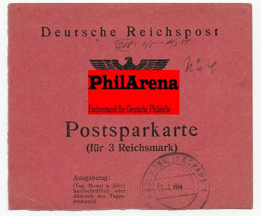 Memmingen 1944, auf der Rückseite einer Postsparkasse mit Stempelung Esslingen