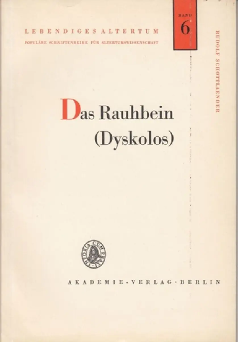 Menander. - übersetzt und eingeleitet von Rudolf Schottlaender: Das Rauhbein (Dyskolos). - ( = Lebendiges Altertum, Band 6 ).