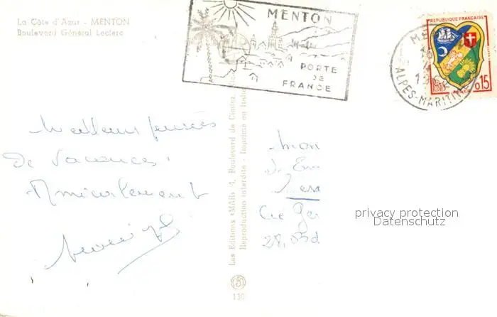 Menton_Alpes_Maritimes Boulevard General Leclerc Menton_Alpes_Maritimes postalisch gelaufen 1962 Erhaltung siehe scans [WerneD78] WernPID7