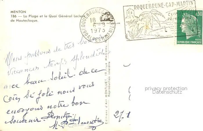 Menton_Alpes_Maritimes La Plage et le Quai General Leclerc de Hautecloque Menton_Alpes_Maritimes postalisch gelaufen 1973 Erhaltung siehe scans [WerneD78] WernPID7