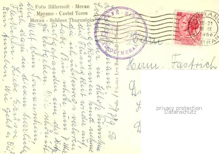 Meran_Merano Castel Torre Schloss Thurnstein Weintrauben Alpenblick Meran Merano postalisch gelaufen 1956 Erhaltung siehe scans [FriedD77] Frierer