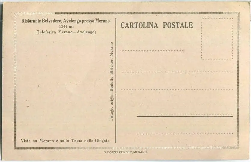 Merano - Risterante Belvedere Avelengo - Verlag Rodolfo Stricker Merano