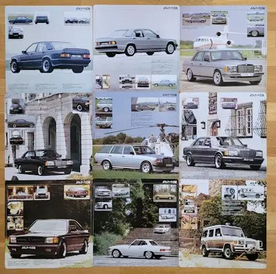 Mappe 6 Seiten 31 x 31 cm, 9 Einzelblätter und 22 Seiten DinA4 Preislisten und AMG Boutique Einzelblätter: 2x W 201 2x W 123 123T 126 126C 107 + 460 Mappe leichte Gebrauchsspuren, Blätter und Preislisten guter Zustand