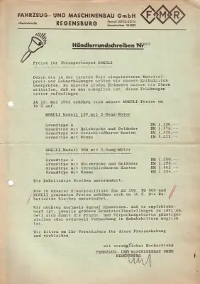 Messerschmitt Mokuli Händlerschreiben Preisliste 1963