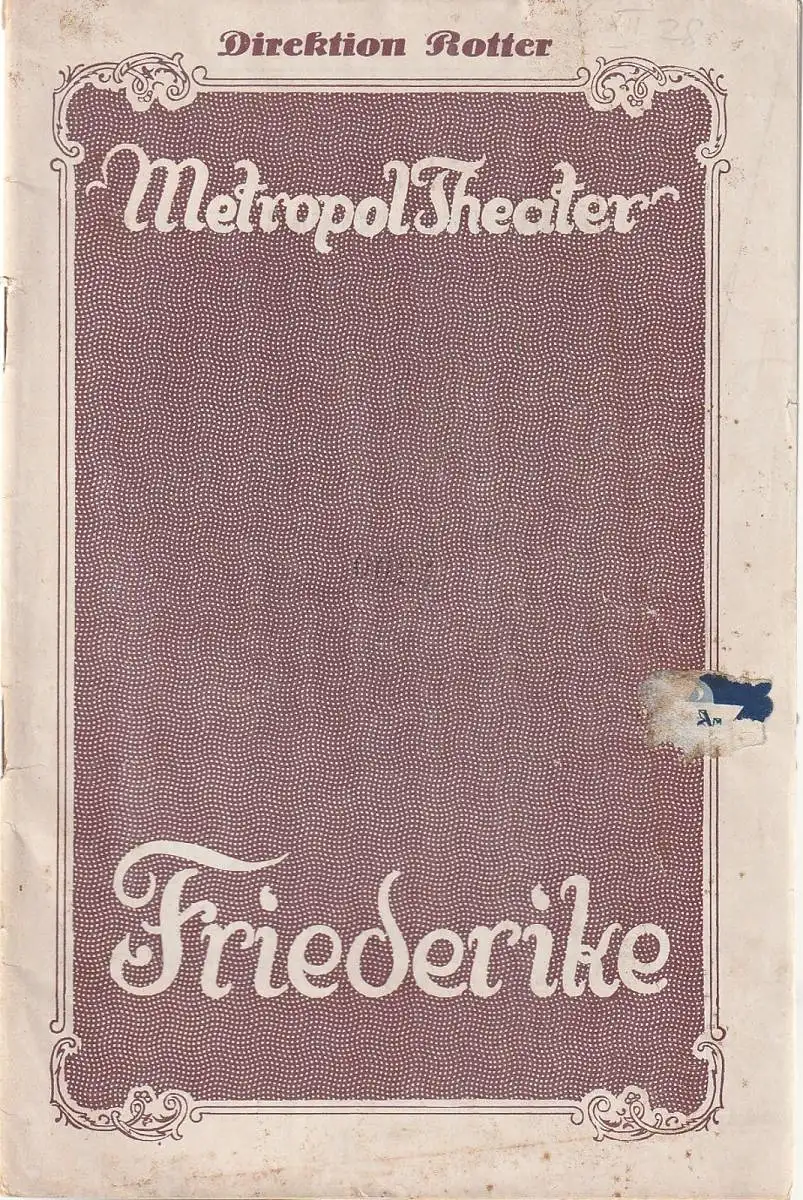 Metropol Theater Direktion Rotter: Programmheft Uraufführung Franz Lehar FRIEDERIKE 4. Dezember 1928.