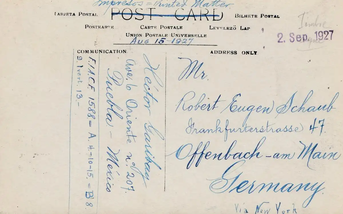 Mexico 1927: post card Daxaca, Pueblo to Offenbach