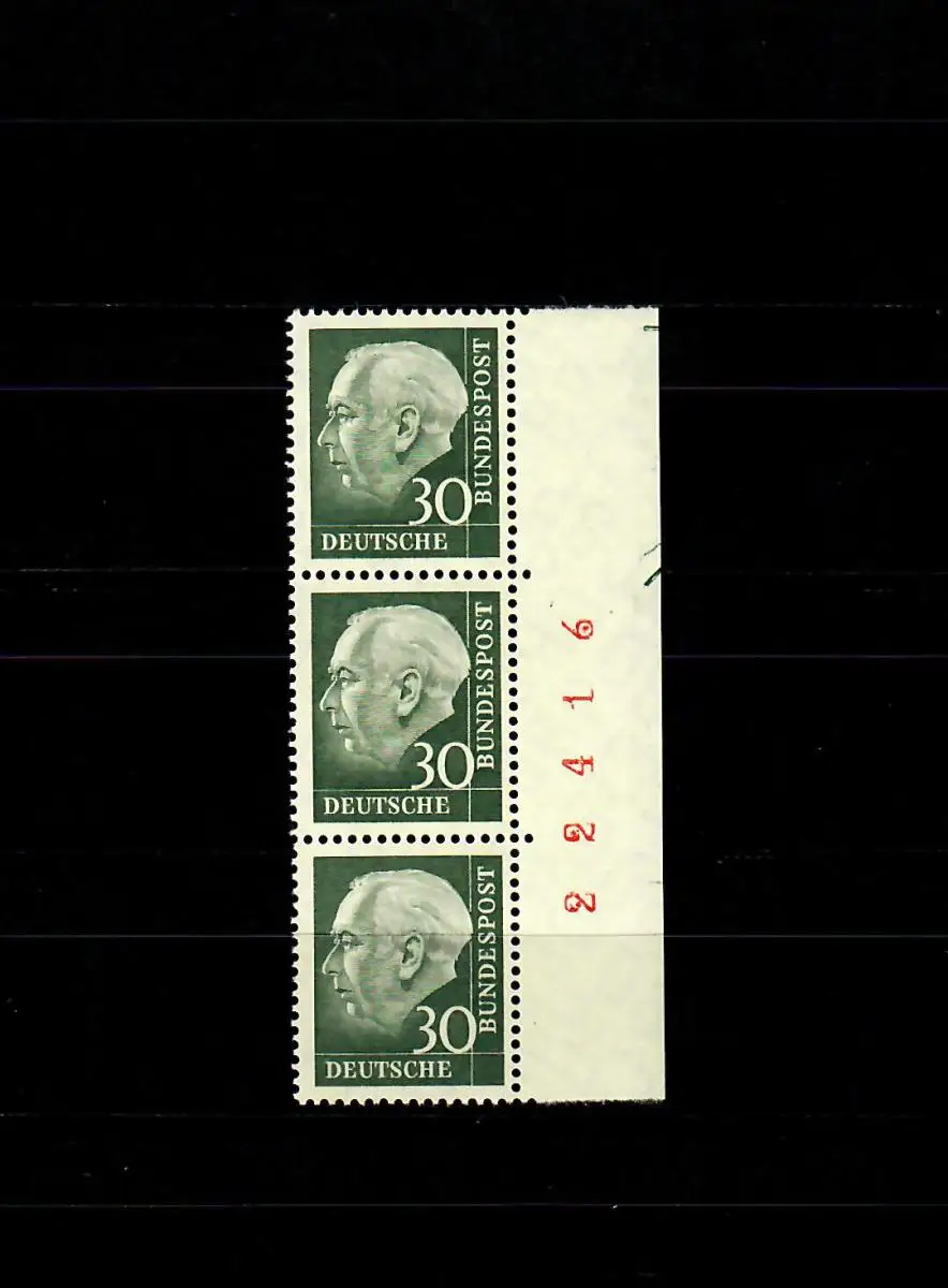 MiNr. 259y, Rand-3er-Streifen, Bogenzähl-Nr., Schnittvermerke, postfrisch **
