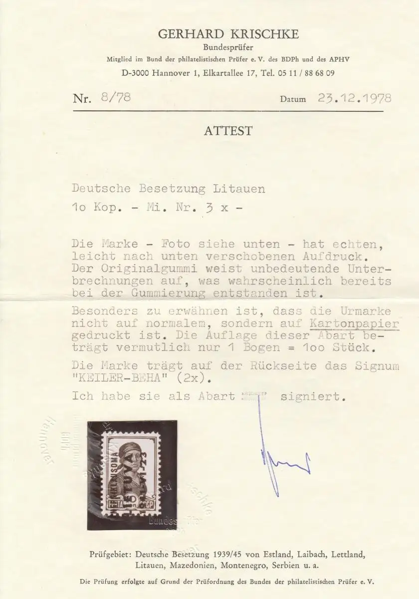 MiNr. 3x, verschobener Aufdruck Kartonpapier, 100 Stk Auflage, */** BPP Attest