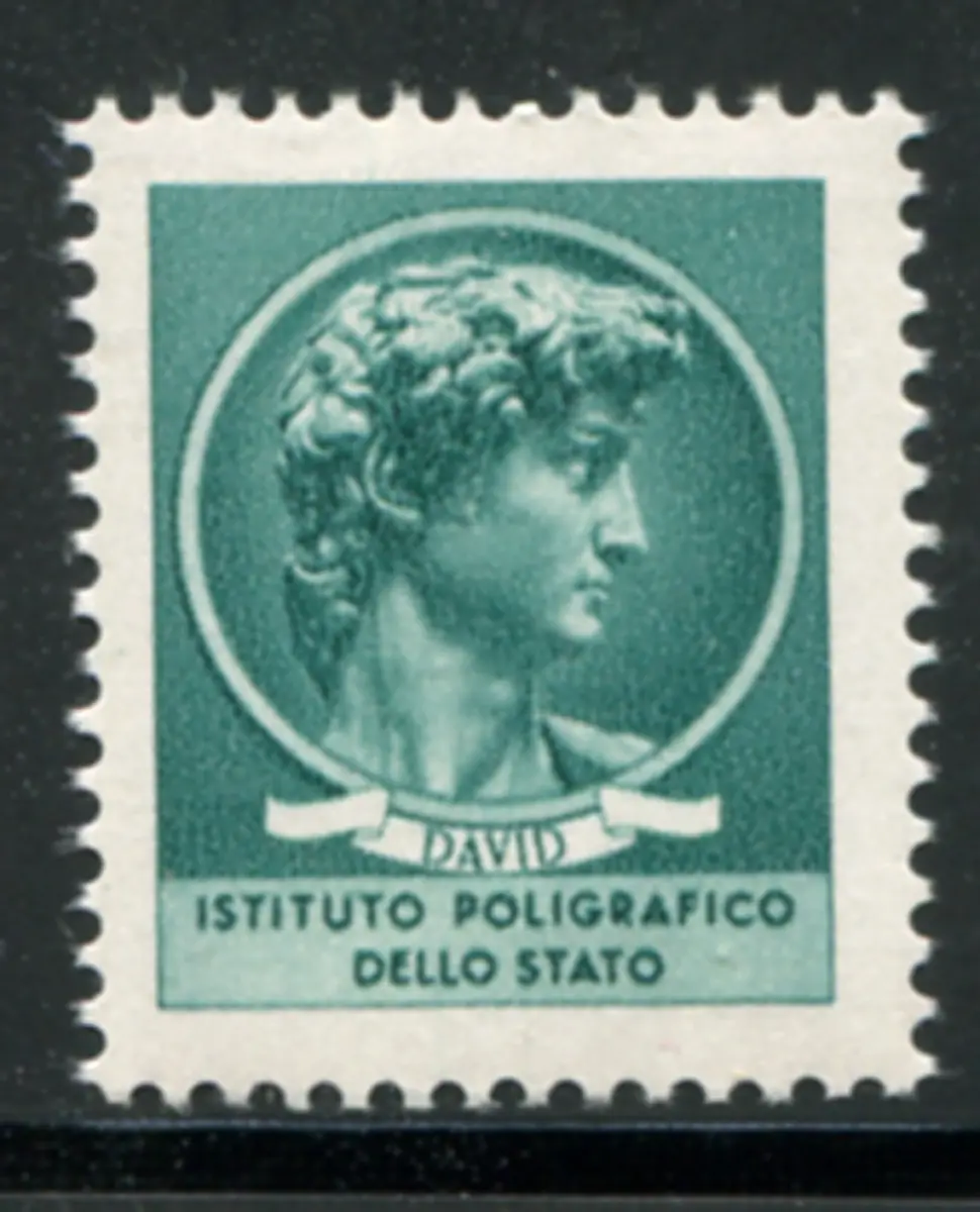 Michelangelos Davidskopf - Proof in grüner Zahnung Vollgummi-Block - Davidskopf von Michelangelo - Proof in grüner Zahnung Block - weißer Gummi (Kat. Griffe Nr. 10) - Interessant, nicht zu verwechseln mit der gleichen Art und Farbe, aber mit gestreiftem gelbem Gummi, der ziemlich häufig ist - Kat. euro 180 Code 526/8