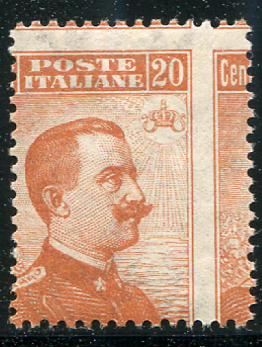 Michetti Cent. 20 Sorten vertikale Verzahnung Vollgummi - Michetti Cent. 20 Nr. 109 schönes Exemplar mit stark verschobener vertikaler Verzahnung Cen rechts - Ungewöhnlich - Kat. euro 450 Cod. 108/13