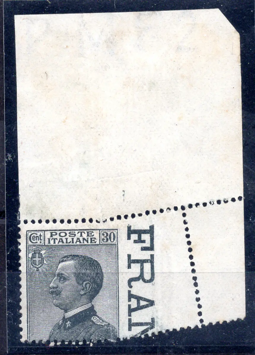 Michetti Cent. 30 ungezähnt rechts Karatfalzvariante Vollgummi MNH - Michetti Cent. 30 grau Nr. 185c rechts ungezähnt durch abnormales Bogenbiegen beim Bohren Bogenwinkel - Selten Cod. 139/13