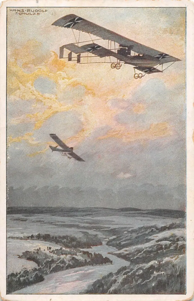 Militärdoppeldecker auf Erkundungsflug über Argonnenwald Patriotika Postkarte