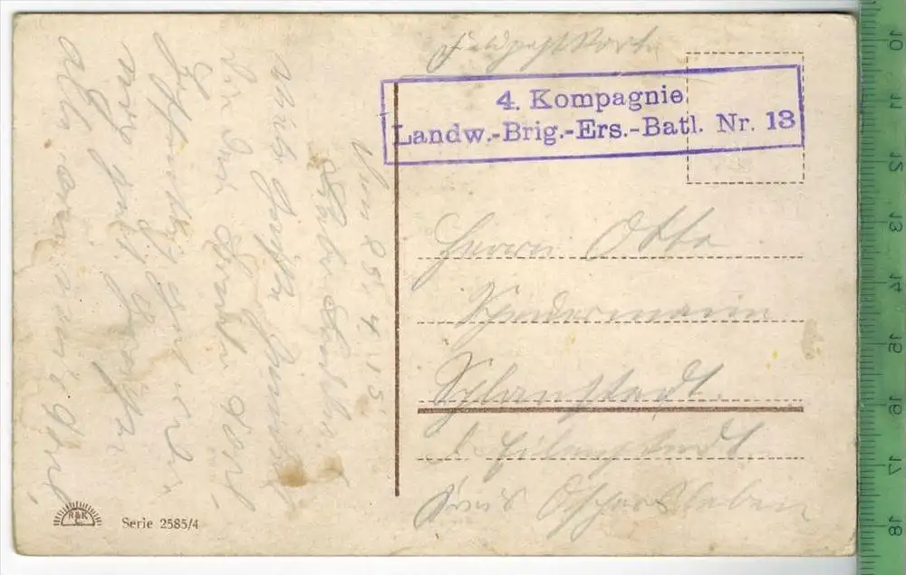 Militärkarte-1915 - Verlag: R&K, Serie 2585 4, FELD- POSTKARTE ohne Frankatur, mit Stempel, Erhaltung: I-II, Karte wird in Klarsichthülle verschickt.