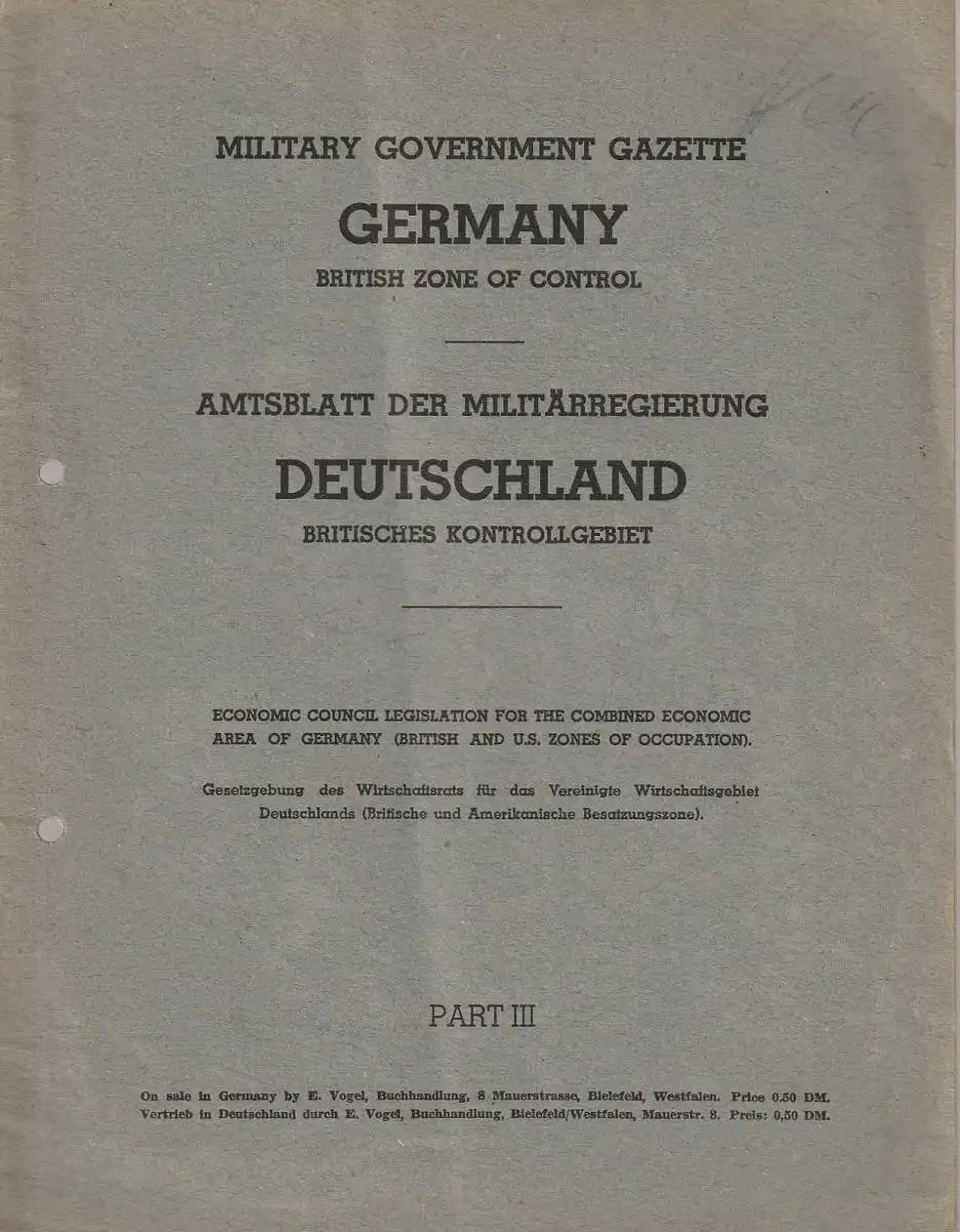 Titel: Military Government Gazette Germany British Zone of Control PART III Amtsblatt der Militärregierung Deutschland Britisches Kontrollgebiet